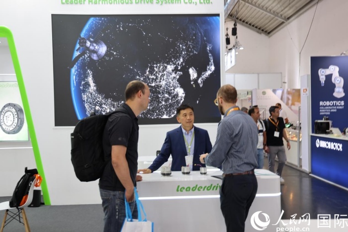 外(wài)國(guó)展商在參觀綠(lǜ)的(d∑÷®÷e)諧波展台。人(rén)民(mín)網記者 劉仲華攝